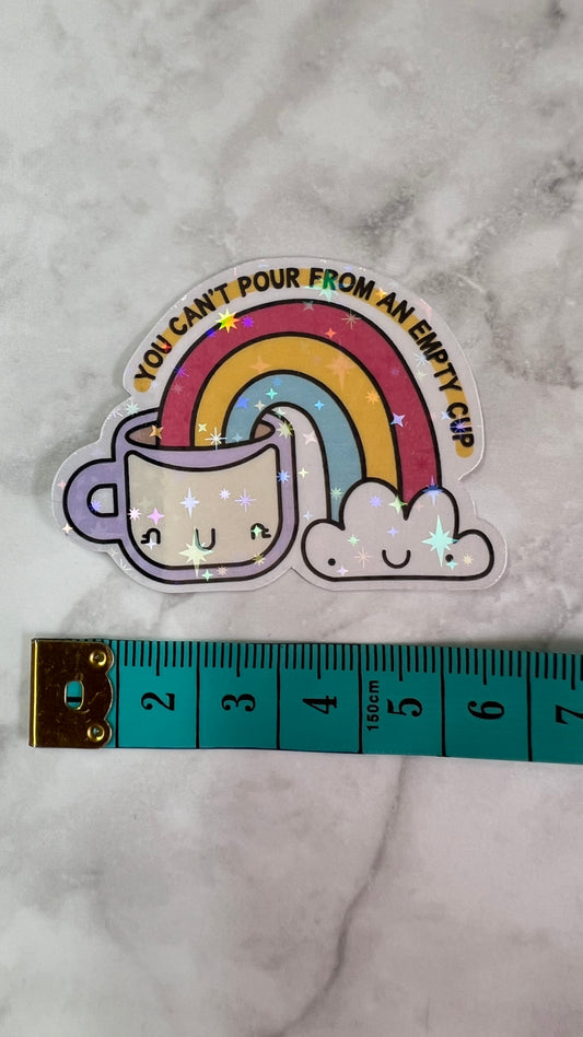 “You can’t pour from an empty cup” positive you’ve got this holographic sticker