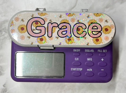 Pink flowers personalised Nutricia infinity and infinity 3 pump sticker
