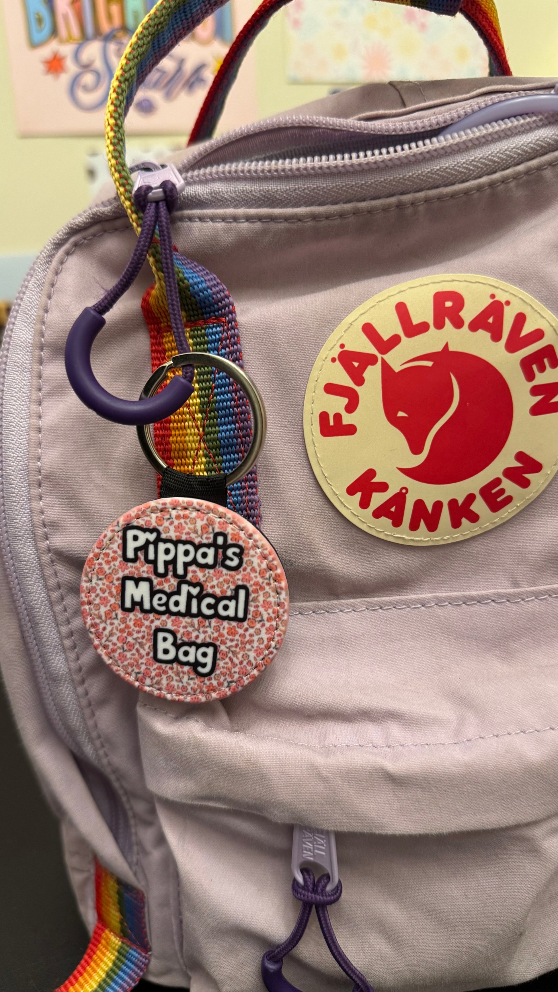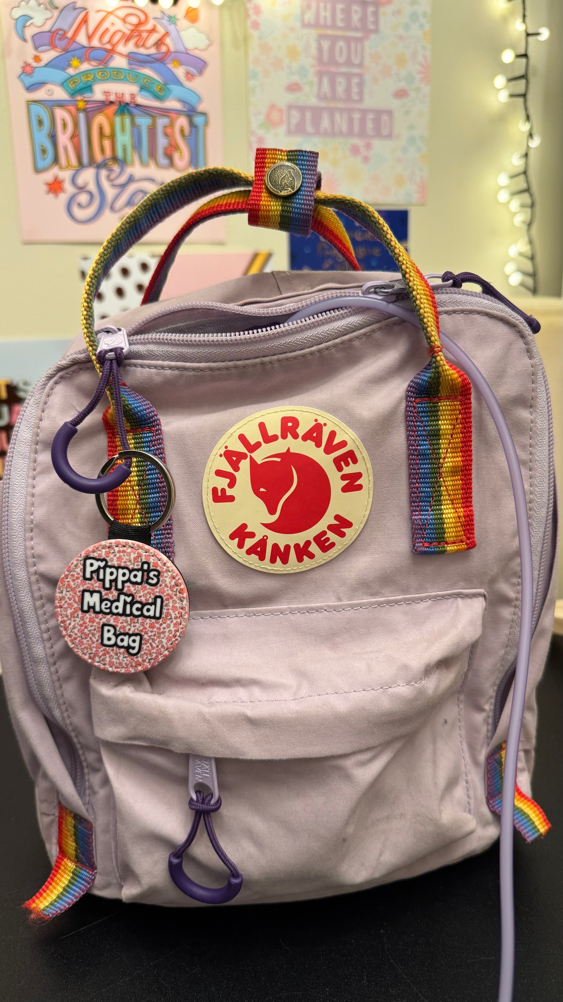 Medical bag tags are a perfect and cute way to give other warning of the importance of your bag and to treat as a medical device/not to touch and takeaway from you! the front has a cute pattern which helps to make your tag feel less scary and more fashionable! on the back you will find a small card were you can write your name, emergency contact and any medical condition and medication you take!