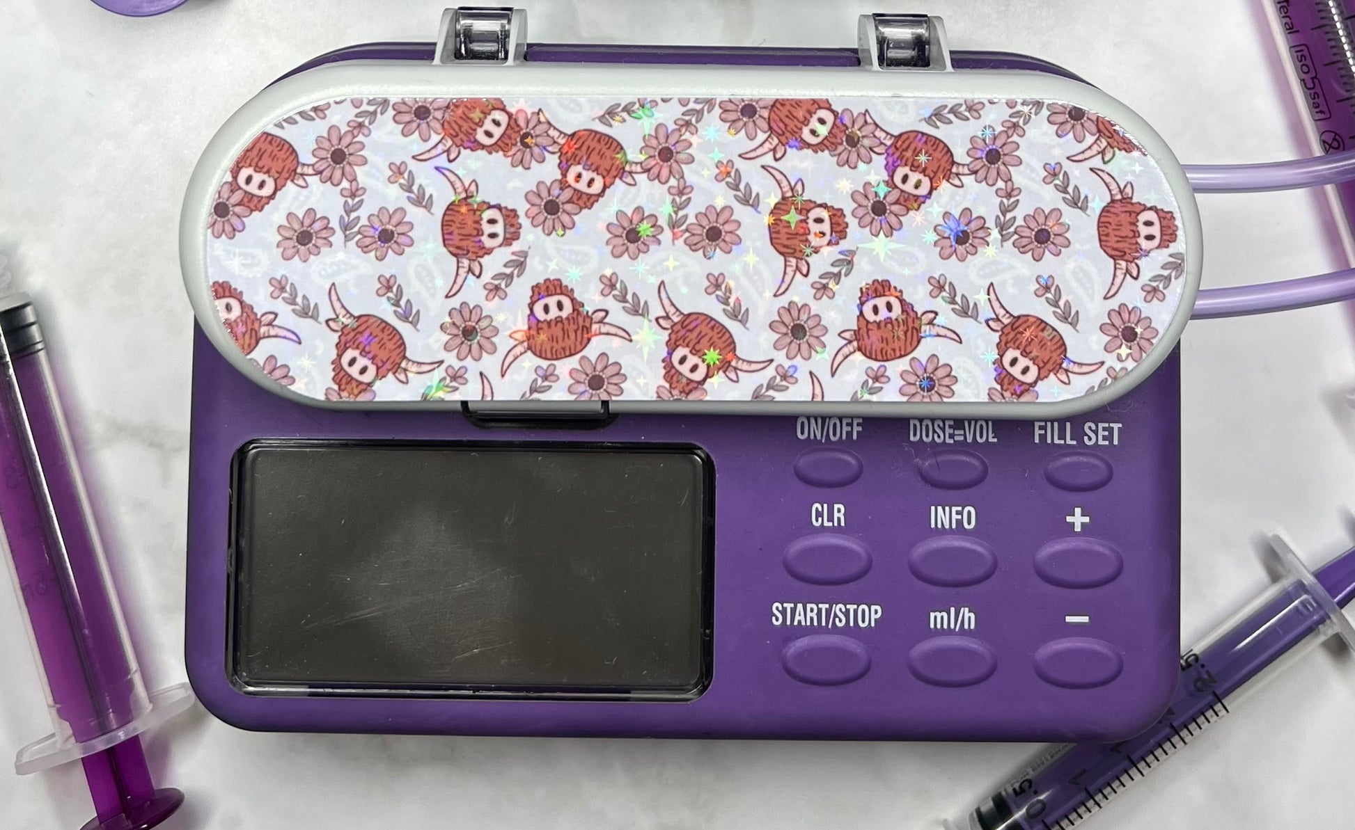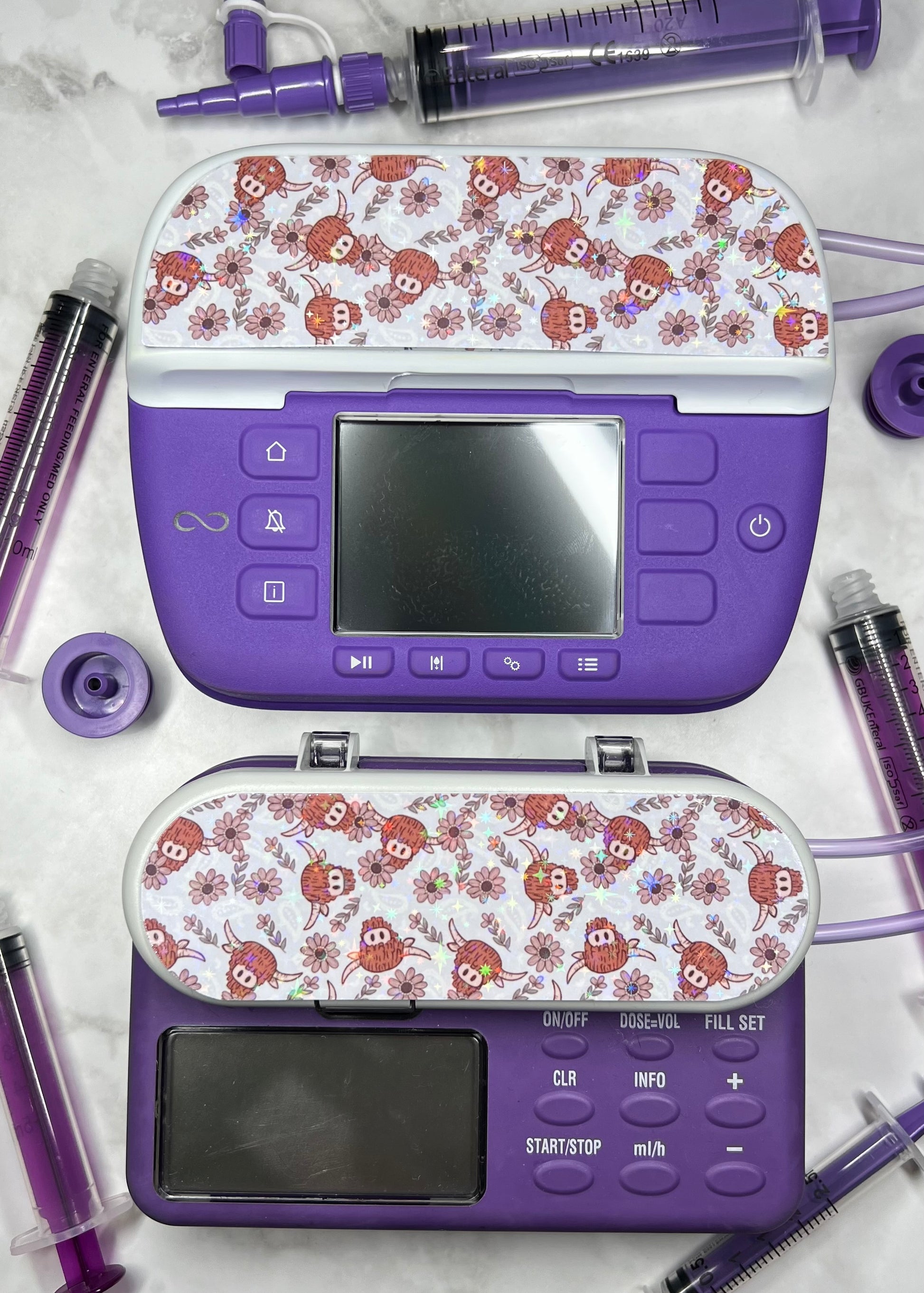 Floral highland cow Nutricia pump sticker