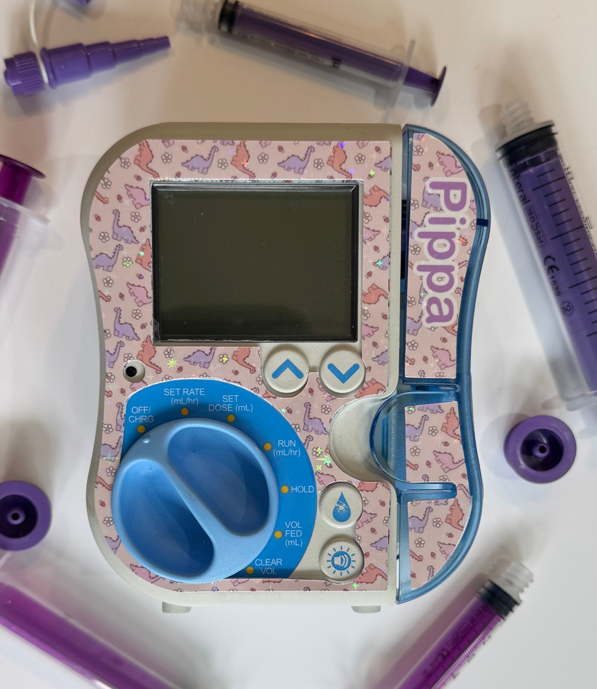 Diplodocus pink and flowers dinosaurs / dino Personalised Abbott pump sticker