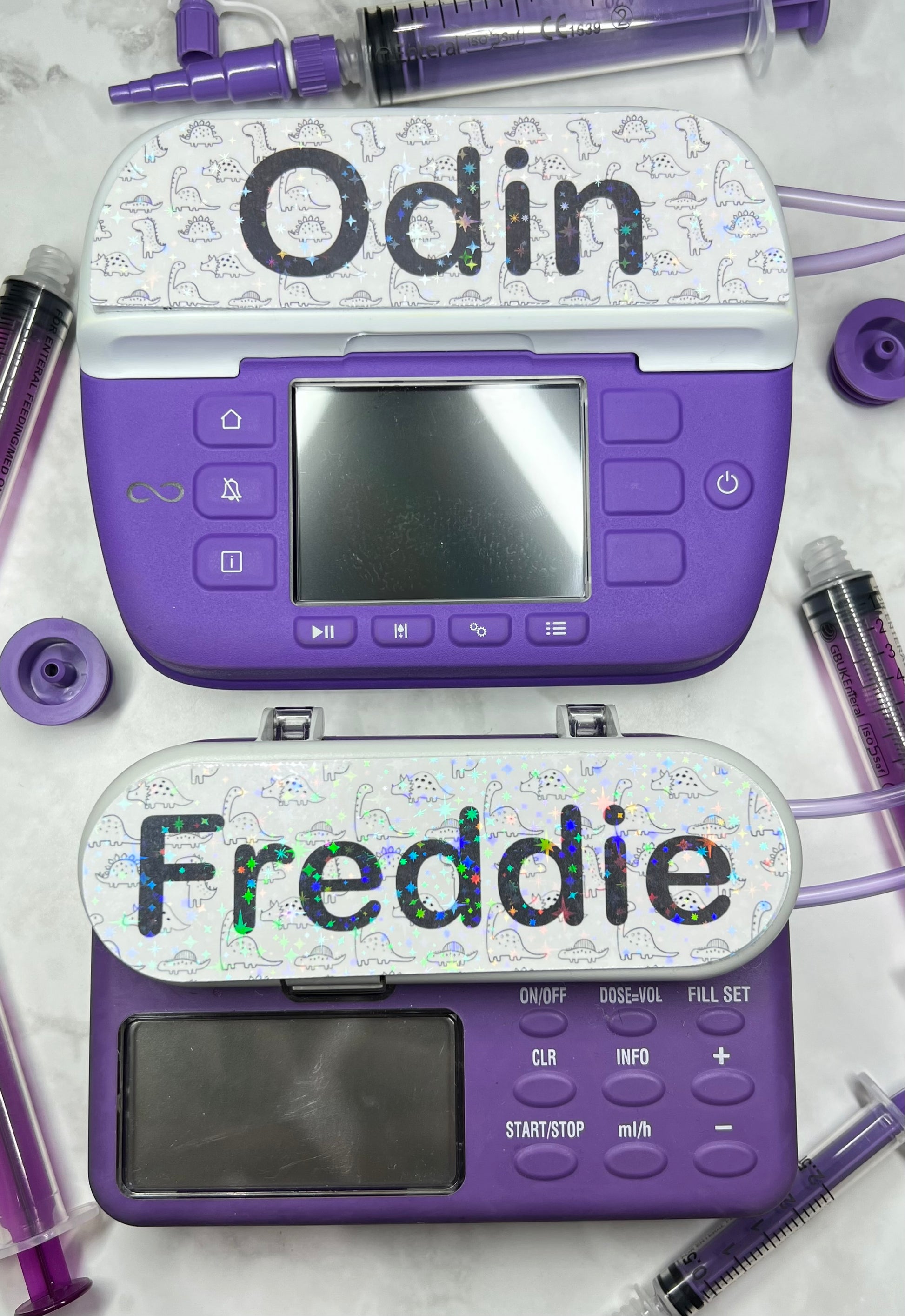 Dino black and white dinosaur personalised Nutricia infinity and infinity 3 pump sticker