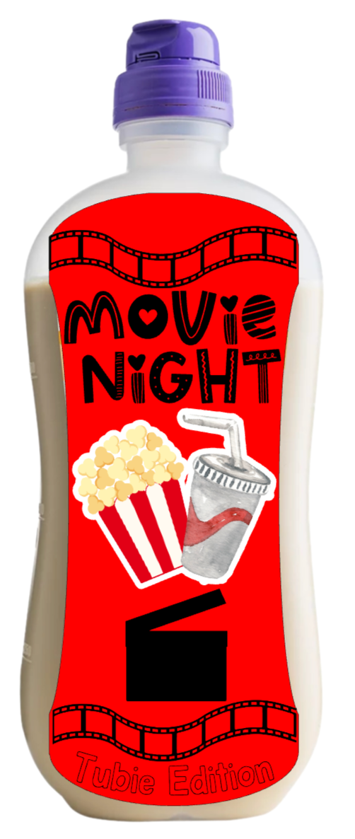 Movie night - popcorn and fizzy drink tubie edition - Foodie al Tubie feed bottle stickers