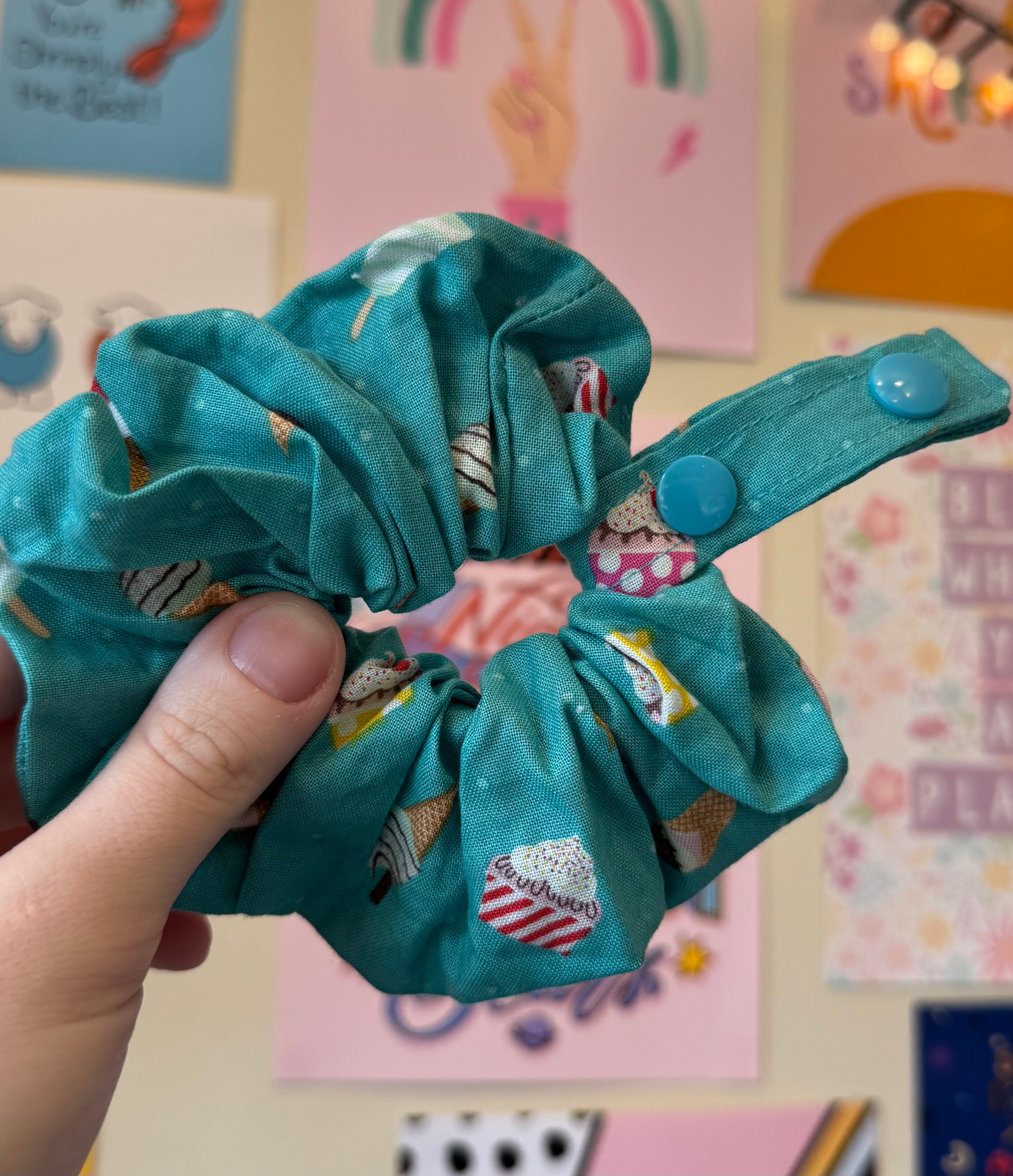 Tubie scrunchie are a smart and stylish way of securing your tube out of the way and prevents out of control hanging tubes and help with pulling on your ear. My scrunchies can also help give your tube an extra Anchorage point which has saved my tube 100s of time from being pulled out!