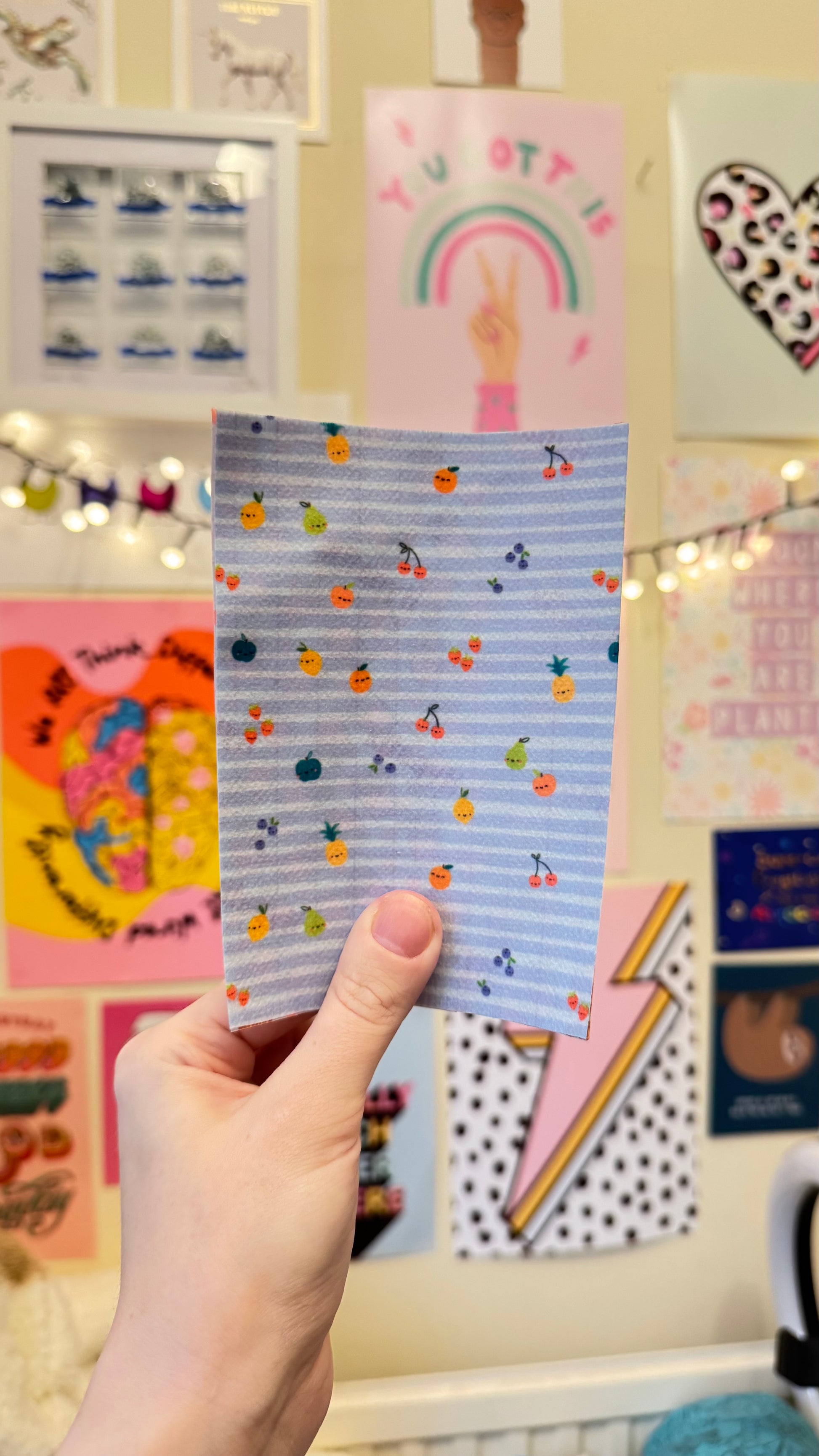 Cute mini fruit on blue stripes tubie tape
