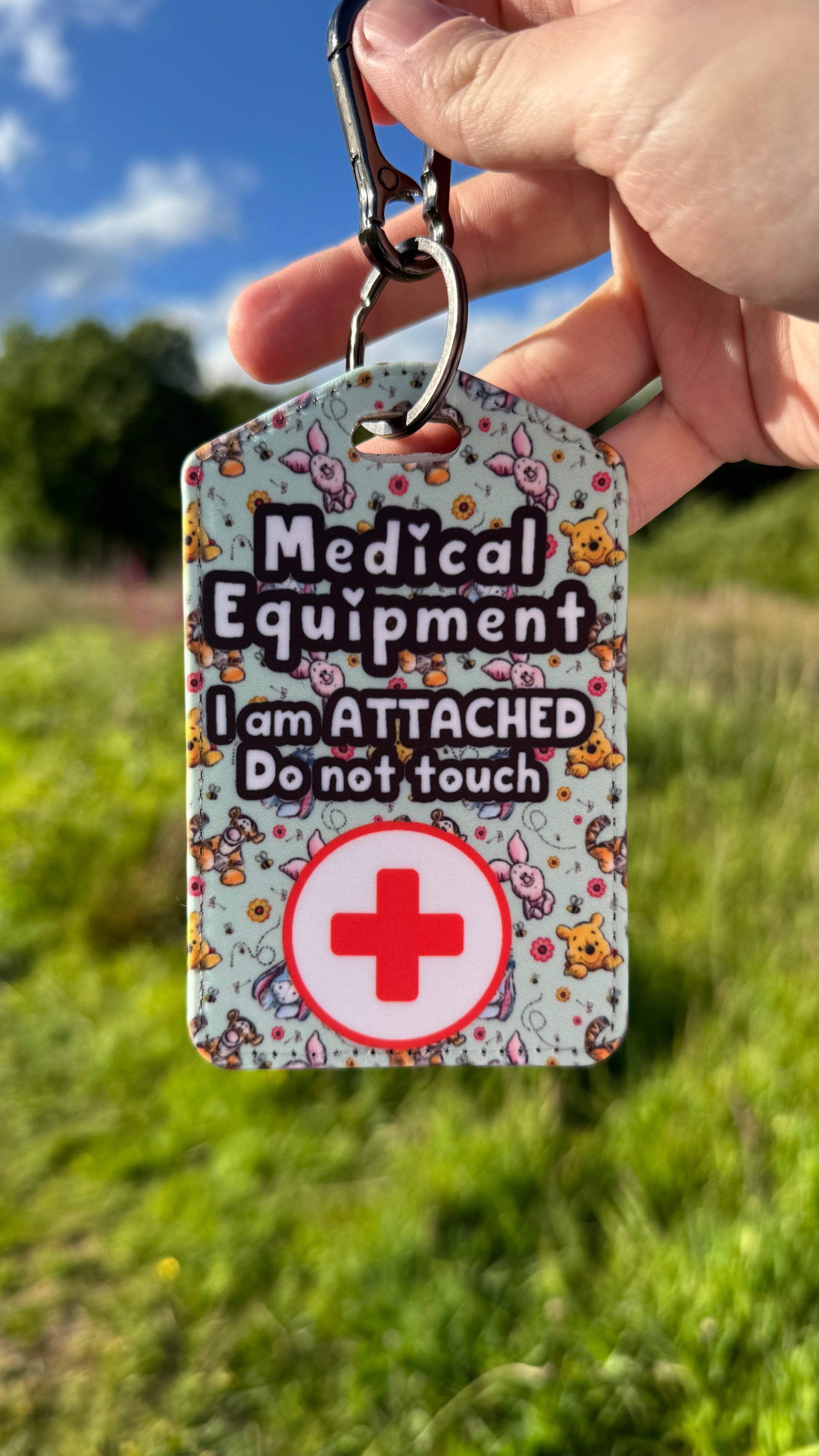 Medical bag tag “medical equipment, I am attached, do not touch” (Pooh and friends print)
