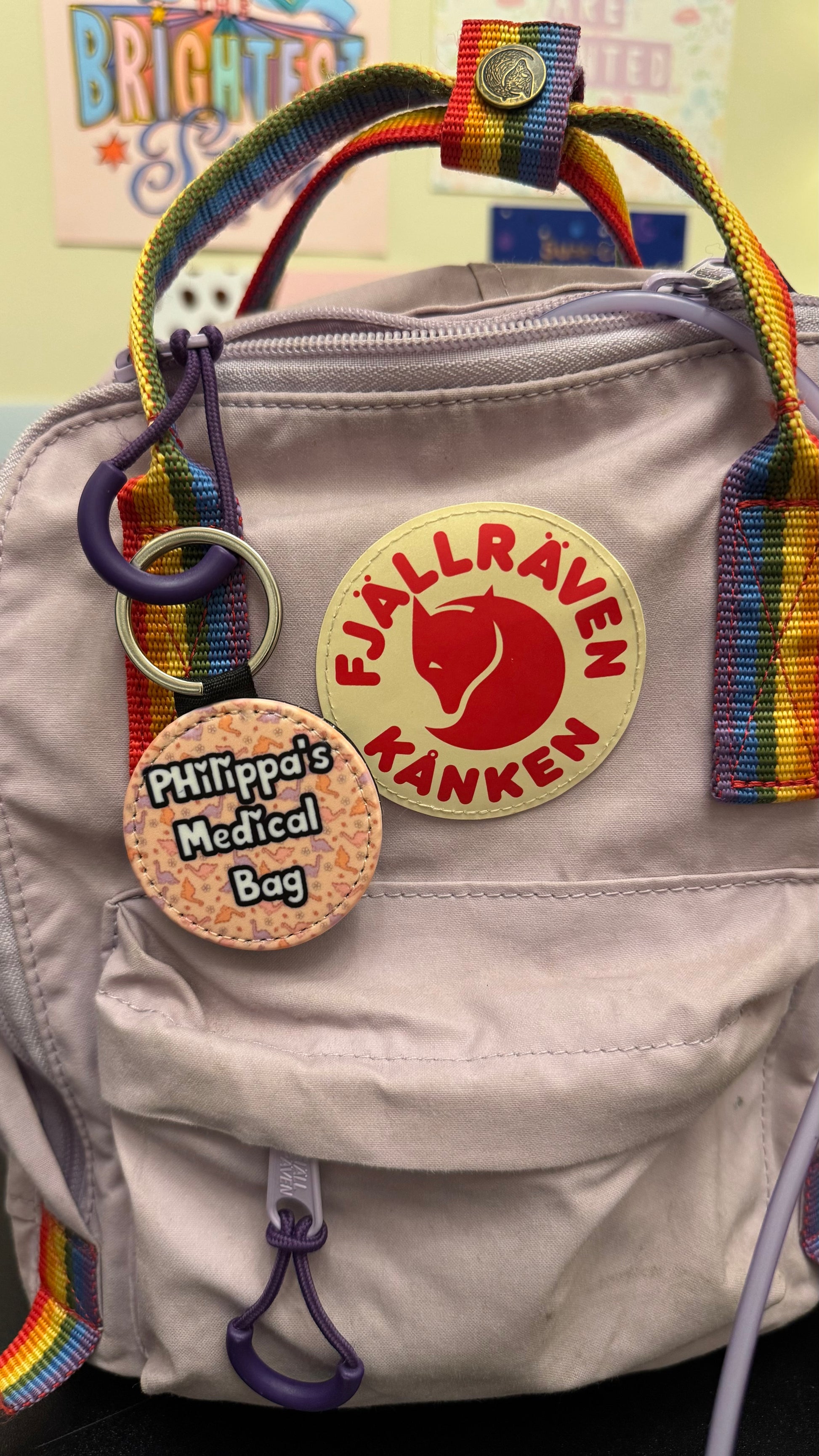 Medical bag tags are a perfect and cute way to give other warning of the importance of your bag and to treat as a medical device/not to touch and takeaway from you! the front has a cute pattern which helps to make your tag feel less scary and more fashionable! on the back you will find a small card were you can write your name, emergency contact and any medical condition and medication you take!