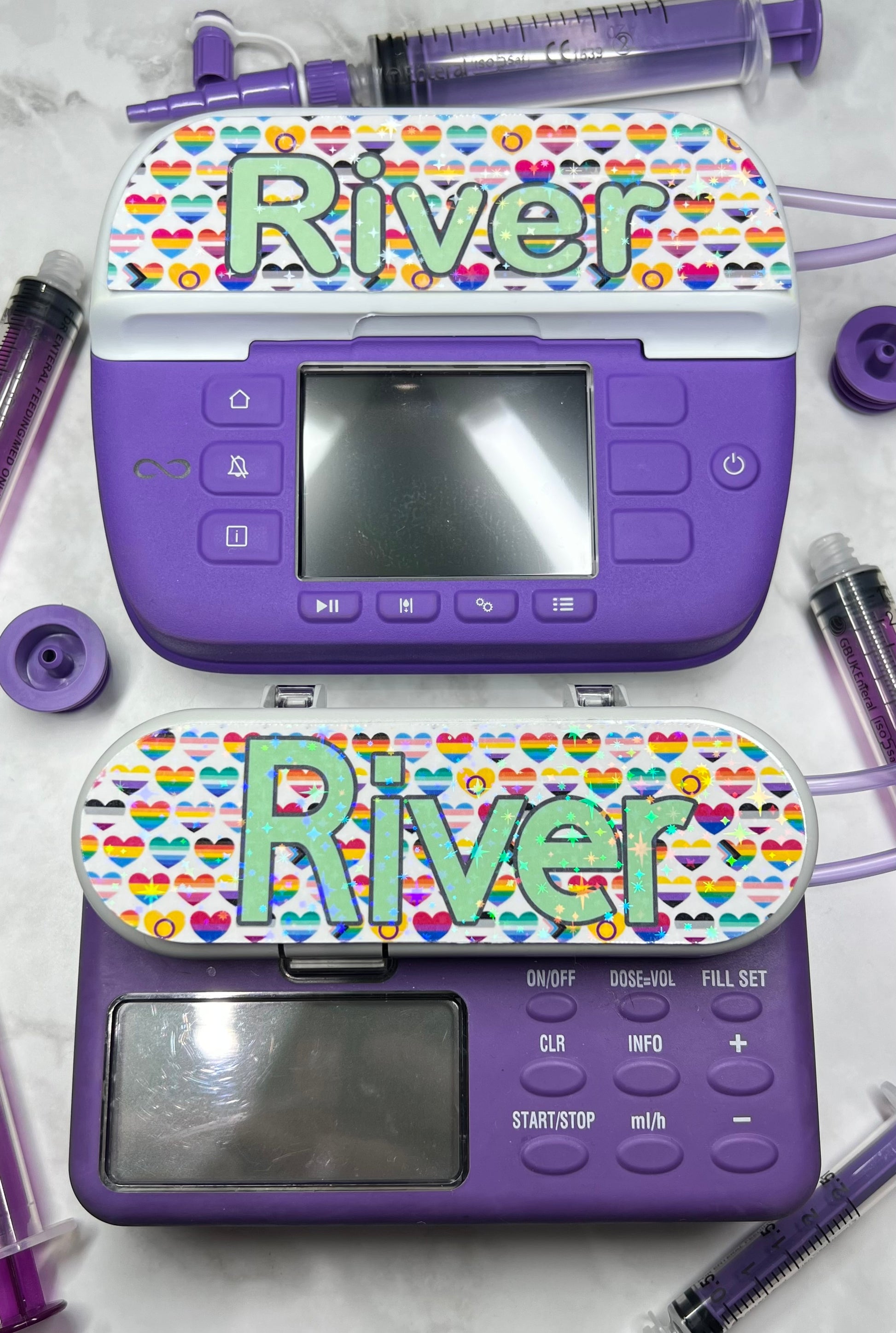 LGBTQIA Pride Hearts personalised Nutricia infinity and infinity 3 pump sticker