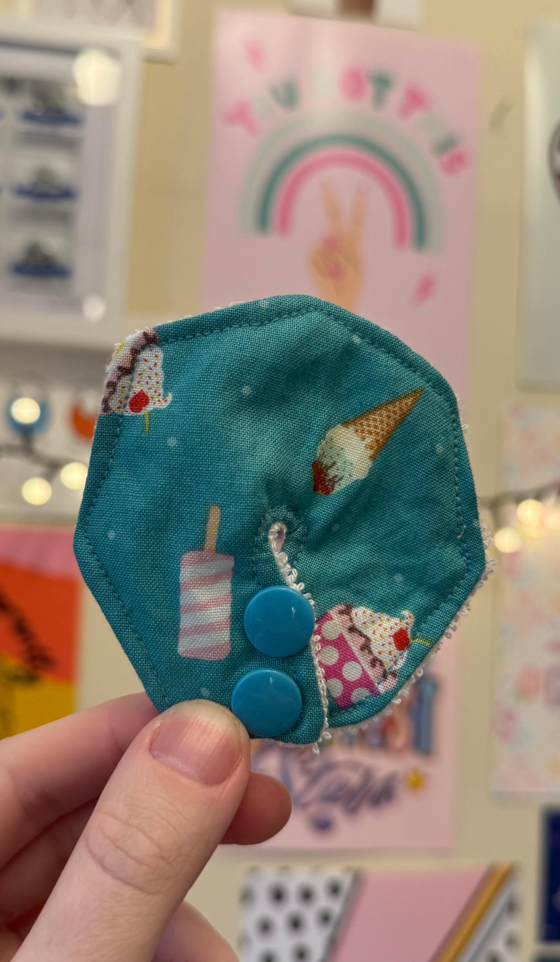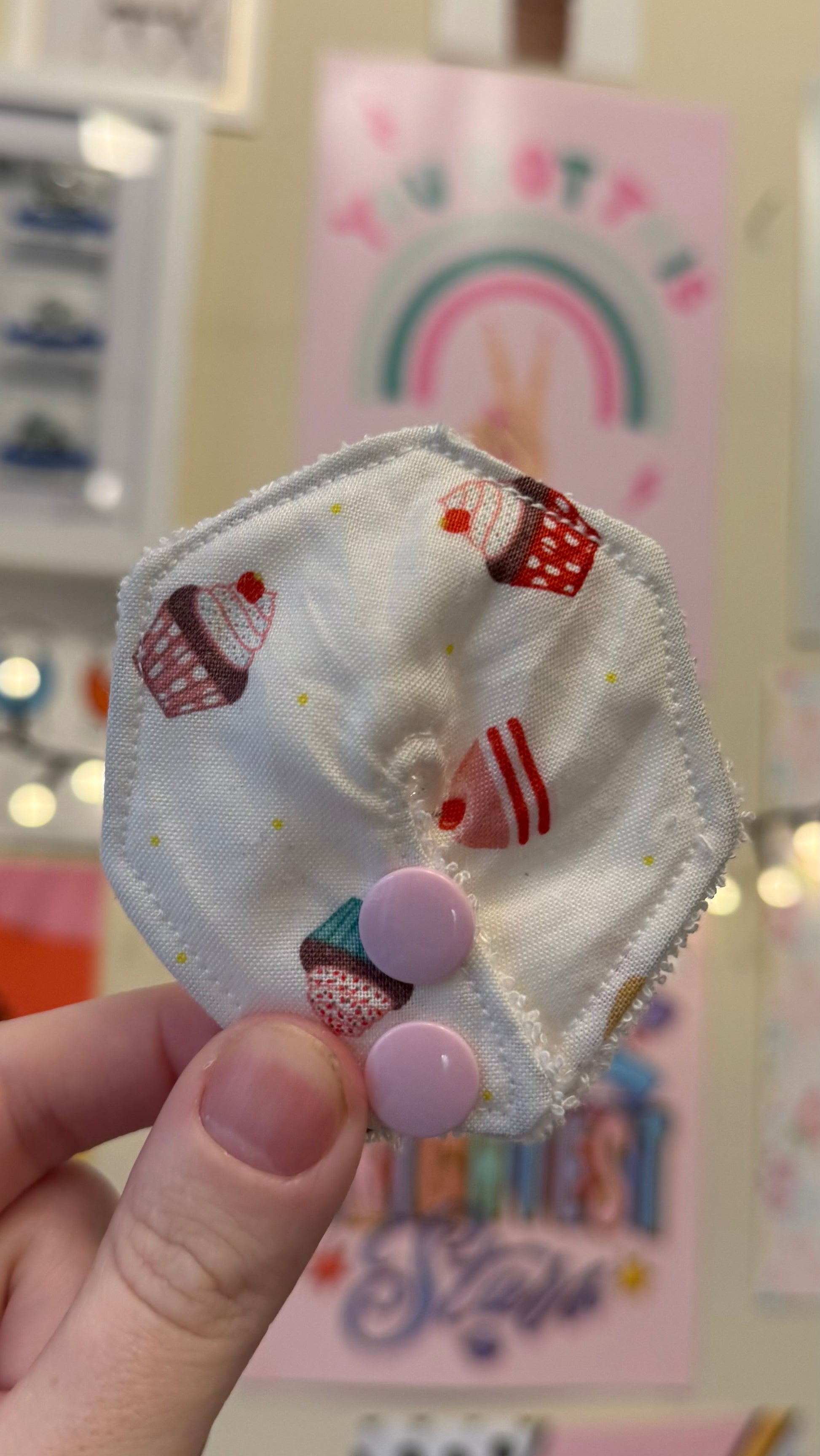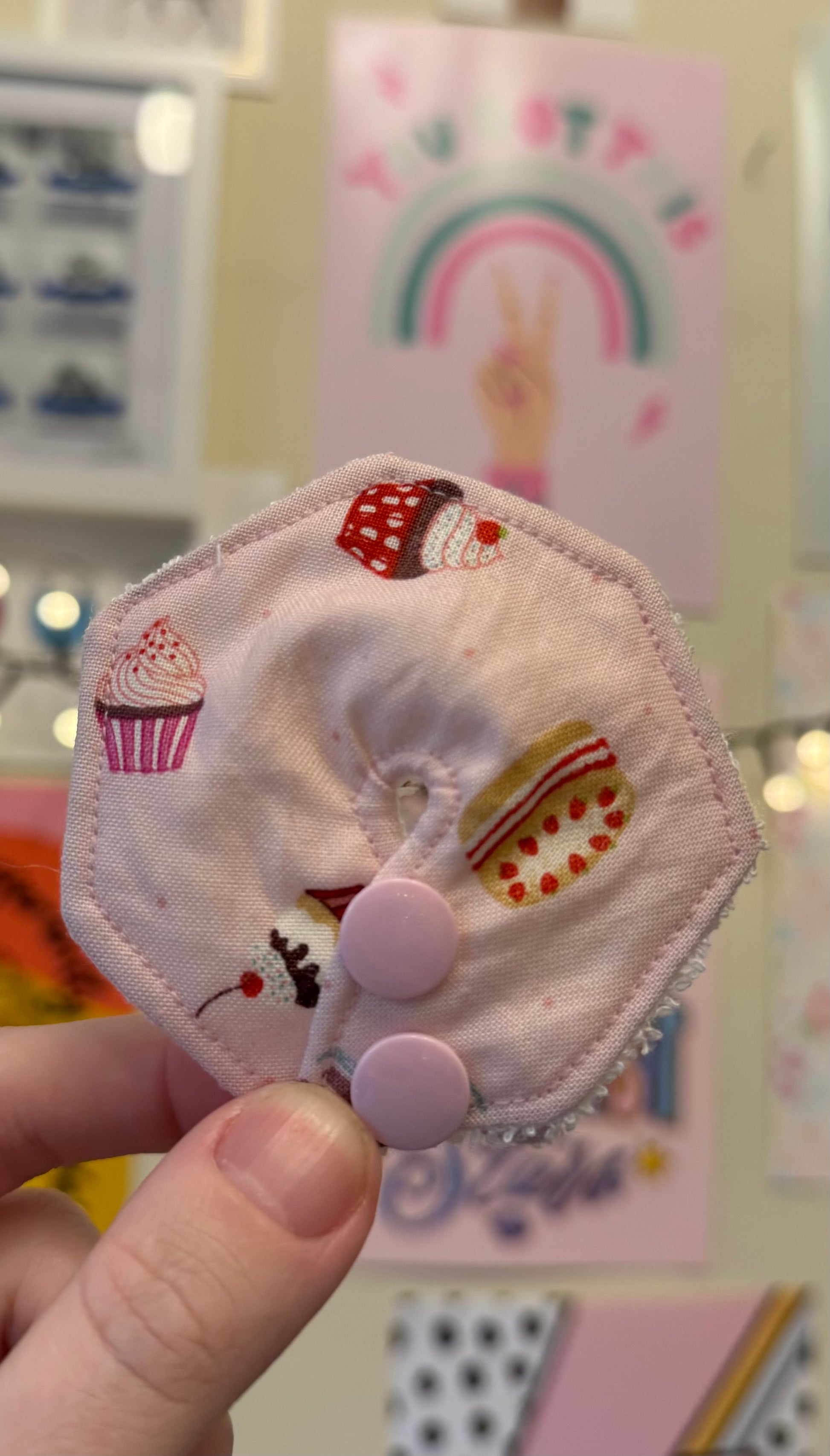 - the extra secure Tubie pads have a extra fastening button so a total of two buttons snaps to clip in to place this means that’s the fabric has less places to move and the fabric is more flush and secure around the tube reduce the rubbing and risk of granulation tissue! I also find if you need to put cream on your stoma the cream stays around the sight and does not end up on the outside bumper or clothes!
